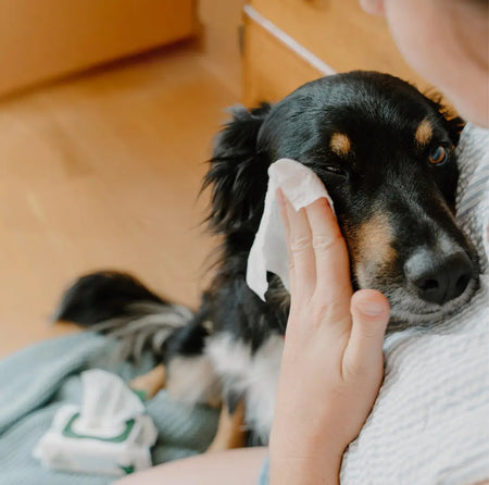 Our eye wipes are formulated with decyl glucoside that helps clean tear stains and discharge and contain soothing aloe & cucumber, for the delicate eye area. They are unscented to avoid irritation.